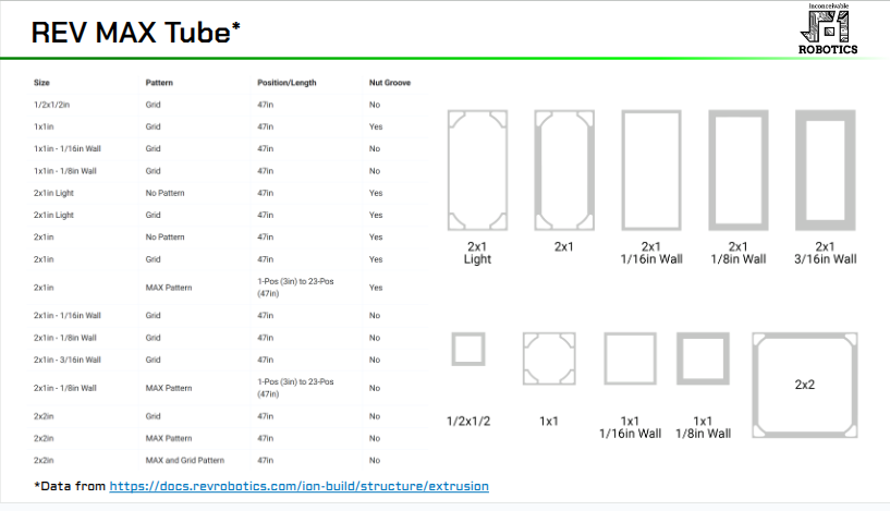 MAXTube is a variety of Box Tube produced by REV Robotics.